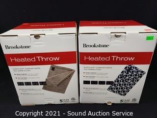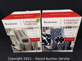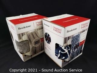 Lot #0479: 2 Brookstone Gray & Blue/White Heated Plush Throws