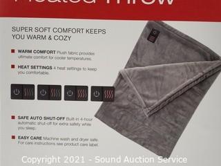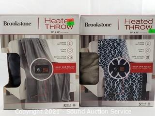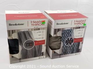 Lot #0073: 2 Brookstone Light & Dark Gray Heated Plush Throws