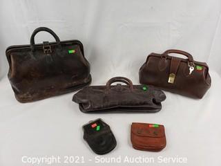 Lot #0171: 3 Vtg Leather Doctor's Bags & Cigarette Pouch