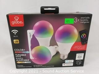 Lot #0481: 3pk Globe LED/RGB Smart WiFi Bulbs