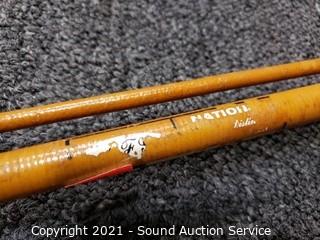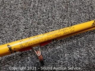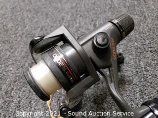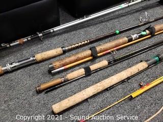 Lot Details: Fiberglass 9ft rod, Eagle Claw Denco Super III 6.5ft rod with Shimano R2000 reel, Olympia 8.5ft rod with Abu Garcia reel, Hunter 7ft fiberglass rod, Shimano Magnum Light graphite 8ft rod, Abu Garcia Conolon graphite 8.5ft rod and 11" net.