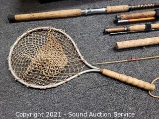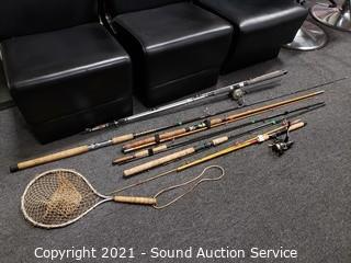 Lot #0207: 6 Fishing Rods w/2 Reels & Net