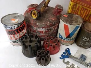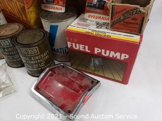 Lot #0222: Gas Cans, Fuel Pump, Distributor Cap & More