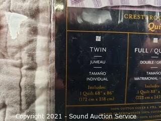 Lot Details: Crestbrook Plaid, gray multi color, no issues, like new. 68" x 86" quilt, 100% cotton.