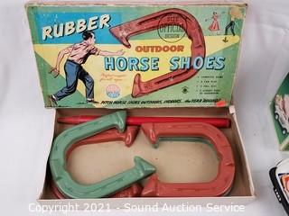 Lot #0090: Vtg Horse Shoe Set, Cartoon Cars & Tin Toys
