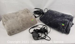 Lot #0135: 2 Brookstone Lt Gray & Dk Gray Heated Plush Throws
