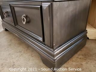Lot Details: Drawers have ball bearing drawer guides. Vinyl has some cat claw marks, some scuffs, refer to photos for condition. 20" H x 48" W x 19" D.