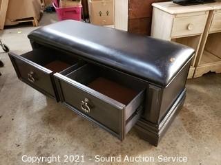 Lot #0012: 2 Drawer Vinyl Upholstered Bench