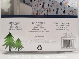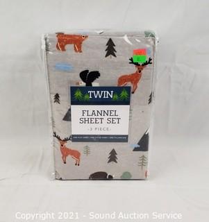 Lot #0050: 3pc Twin Animal Print Flannel Cotton Sheet Set