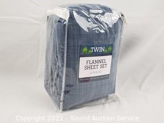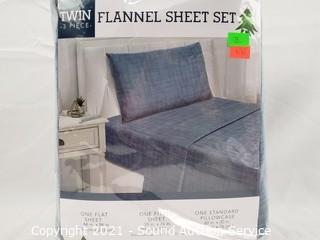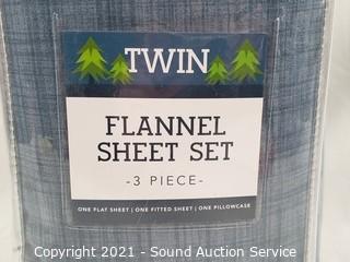 Lot #0035: 3pc Twin Blue Flannel Cotton Sheet Set