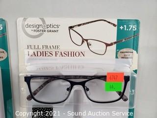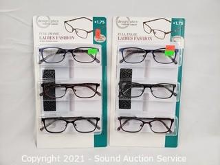Lot #0044: 6 Design Optics +1.75 Reading Glasses w/2 Cases
