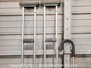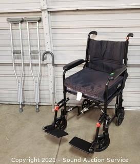 Lot #0022: Aluminum Medical Transport Chair, Crutches & Cane