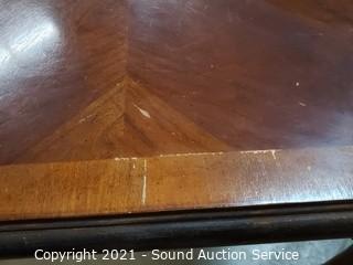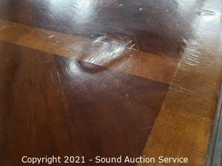 Lot Details: Various wear to the finish, refer to photos. Left and middle drawer don't stay on the drawer track very well and tilt downward when open. 30" H x 56" W x 28" D.