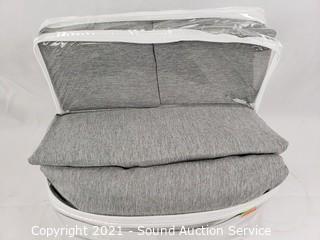 Lot Details: Grey heather print. 1 flat, 1 fitted, 4 pillowcases. No issues. 100% polyester.