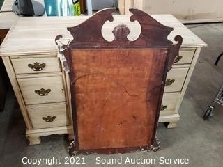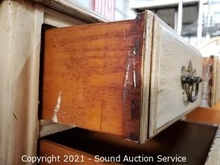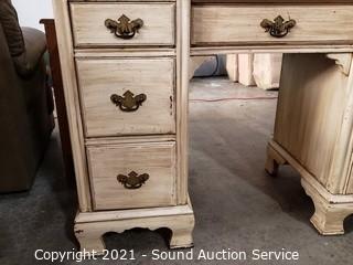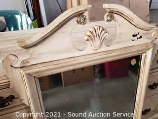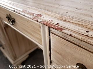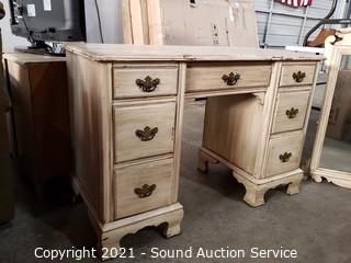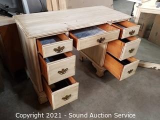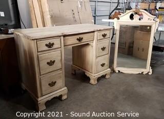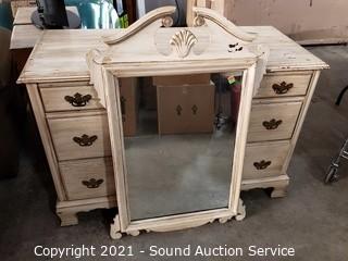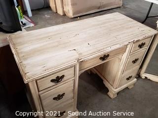 Lot #0011: Distressed Finish 7 Drawer Desk w/Matching Mirror