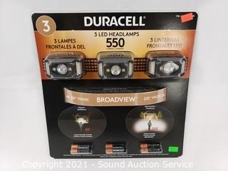 Lot #0170: New 3pk Duracell LED Head Lamps