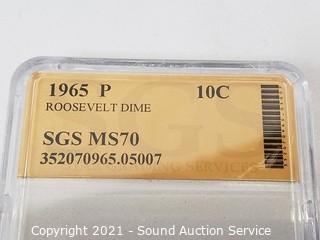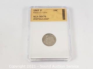 Lot #0386: 1965-P MS70 Graded Roosevelt Dime
