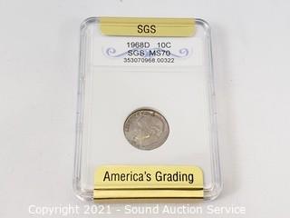 Lot #0387: 1968-D MS70 Graded Roosevelt Dime