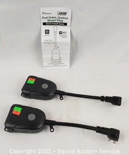 Lot #0052: 2 Feit Dual Outlet Outdoor Wifi Smart Plugs