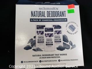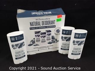 Lot #0305: 3pk Schmidt's Charcoal+Magnesium Natural Deodorant