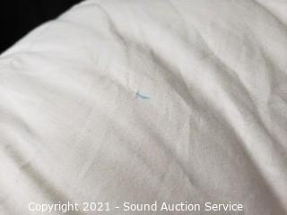 Lot Details: 78" x 80". Some loose threads, mostly on the seam, and a small pen mark.
