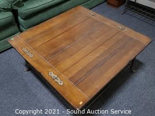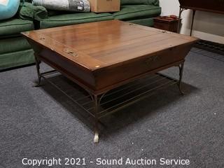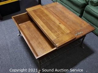 Lot #0006: Designer Wrought Iron Base Lift Top Coffee Table