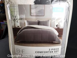 Lot #0447: Like New BHF 3pc Ivory King Plush Comforter Set