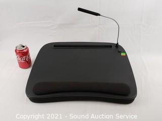 Lot Details: Comes with light, works. Has slide out phone tray and tablet holder. No issues. 18" x 18".