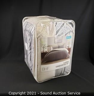 Lot #0221: New BHF 3pc Grey King Plush Comforter Set