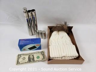 Lot #0312: Stun Gun, Cigar Case Flask & Knit Beanie
