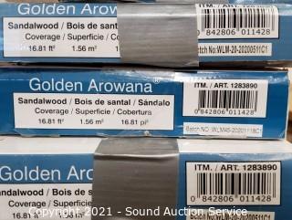 Lot Details: By Golden Arowana. 16.81 sq.ft. per bundle, for a total of 201.72 sq.ft. 7.2" W x 48" L. One bundle has slightly more planks than a full bundle. All packages have been opened.