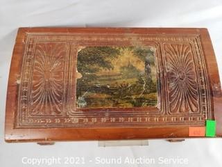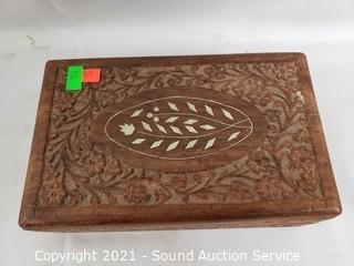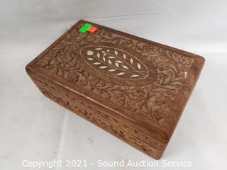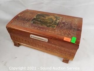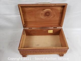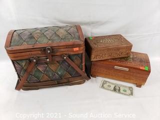 Lot #0192: 2 Carved Wood Boxes & Woven Chest