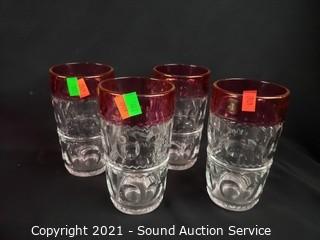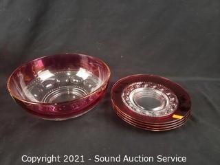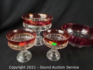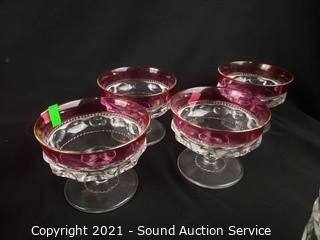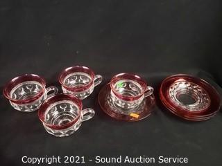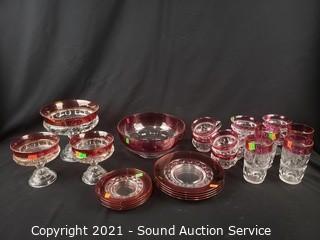 Lot #0219: 24pc Cranberry Flash Thumbprint Dish Set