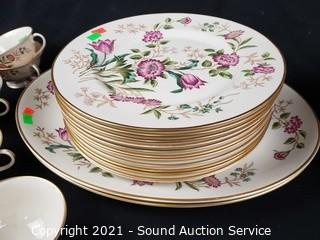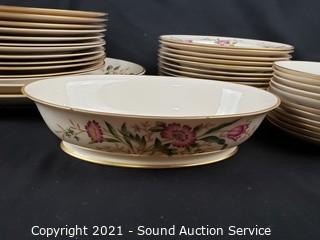 Lot Details: Includes 12 cups, 11 saucers, 10 soup bowls, 12 dinner plates, (2) 16" platters and 9" oval server. Notice a few chips.