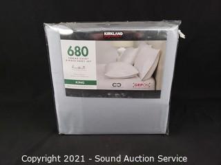 Lot #0255:     6pc Kirkland King Light Blue Cotton Sheet Set