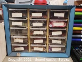 Lot Details: Includes beads, glitter, needles, pins and more. Please refer to photos or make an appointment and come into preview.