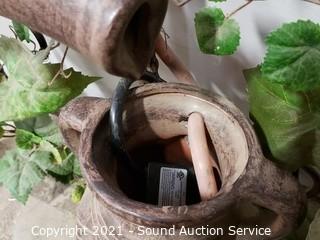 Lot Details: 25" H x 16" W. Pump works, but water is not making it out of the top hose, either hose is clogged, maybe pump needs cleaned, does not seem to have enough pressure.