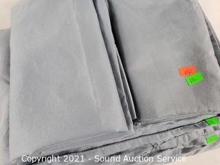 Lot Details: Light blue, 680 thread count, 100% cotton. Fitted has a small section that is pilling, no other issues. 1 flat, 1 fitted, 4 pillowcases.