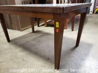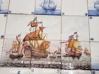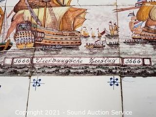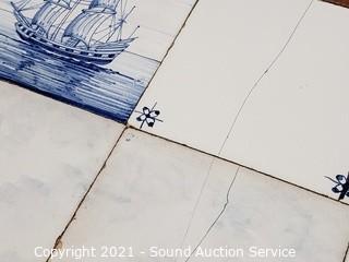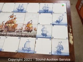 Lot #0015:     Mahogany Tile Top Ship Print Table