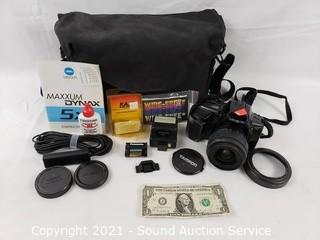 Lot Details: Comes with Tamron AF 24-70mm 1:3.3-5.6 lens, case, spare batteries and transfer cable. Appears to be in working condition.