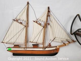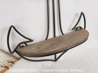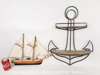 Lot #0035: Wood Sail Ship Decor & 2-Tier Anchor Wall Shelf