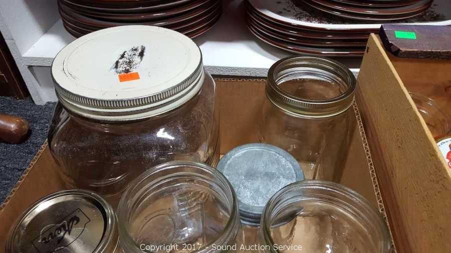 Lot #0115: Collection of Canning Jars & Wooden Crate