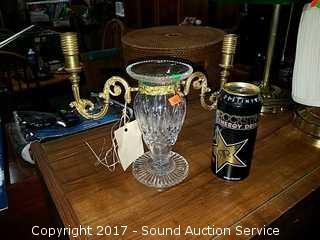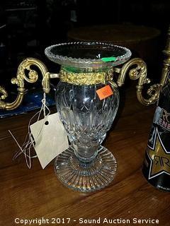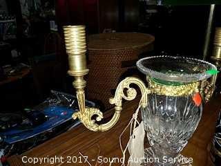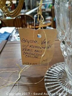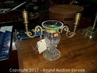 Lot #0218: Crystal Vase w/Removable Brass Candlestick Holders