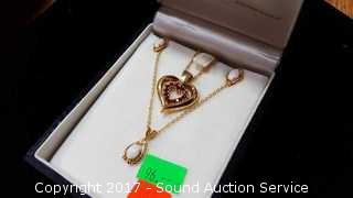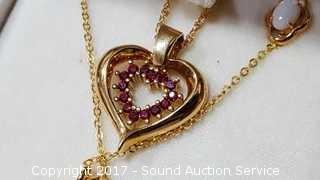 Lot #0096: Gold Tone Necklaces w/Fire Opal & Ruby Gemstones