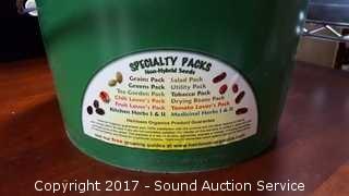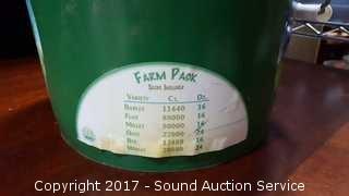 Non-Hybrid seeds. Farm pack seeds included. Barley 11,440, Flax 88,000, Millet 88,000, Oats 27,000, Rye 17,488, Wheat 20,880. B Bucket of the Farm Pack.