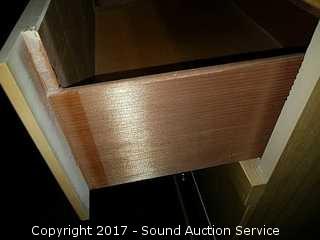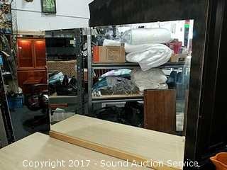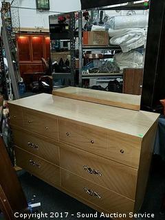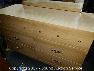 6 cedar lined drawers. Beveled glass mirror. Approx. 30" tall, 47.5" wide and 17.5" deep. Mirror is 45.5" x 36"