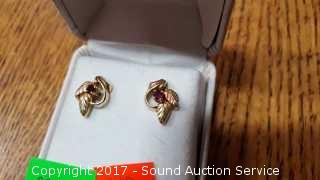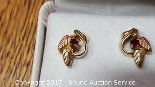 Lot #0089: Pierced Ear 10k Black Hills Gold & Ruby Earrings