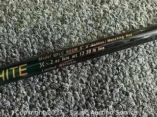 Rod is by Zebco Model QXLC 9SM. 9' salmon rod. 1/4 to 2oz lure, 12-30lbs line. In excellent condition.