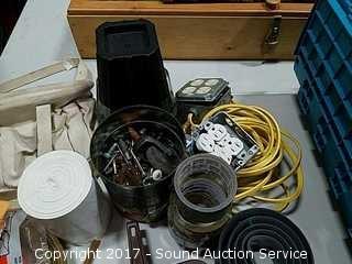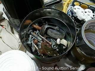 Lot #0051: Tote of Misc. Tools, Hardware & Household