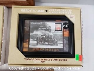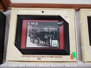 Lot Details: Smallest artwork is 6" x 5", largest is 24.5" x 8". Includes 2 Vintage Collectible Stamp Series artwork 6" x 8" and (2) Clear Photo Dimensional 10-Opening Collages.